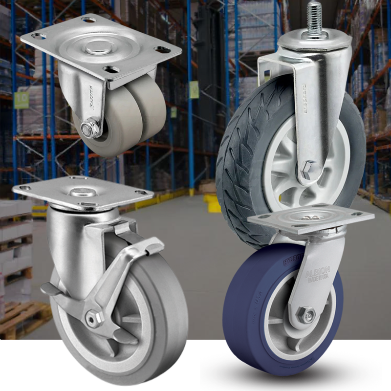 QuickShipMFG PART: ES8X2TPDBE-line Swivel 8"x2" Rubber Donut USA-Made TPR Wheel 4"x4.5" Plate Caster; Part# ES8X2TPDB